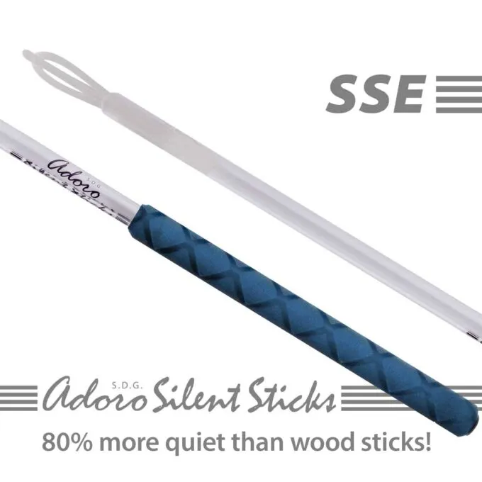 Ador Silent-E-Reticks are drum sticks designed specifically for electronic sets, enabling a quieter game without losing natural feeling. Thanks to the use of a soft and flexible, Dual Loop Reflex TIP® tip reduces the unwanted sound of a paddock by up to 50%, while providing a quick bump on all hard surfaces. A thicker, air-filled polycarbonate stem and a soft, non-slip X-GRIP handle in blue additionally absorb shocks, increasing the play of play.