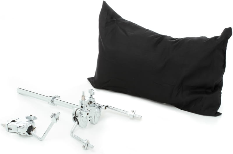 The set includes a double tom holder, floor tom feet and a damping pad for the kick drum. The set does not include the stands shown in the photo.