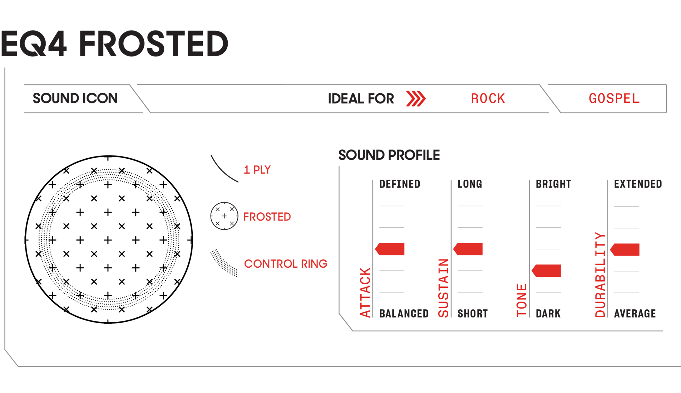 The head is made ofsingle layer of 10 mil foiland equipped withinternal overtone control ringwhich reduces excessive sustain while maintaining the natural character of the drum. In terms of sound, it offers moderate attack, sustain and brightness, which makes it a very universal solution for many musical styles.