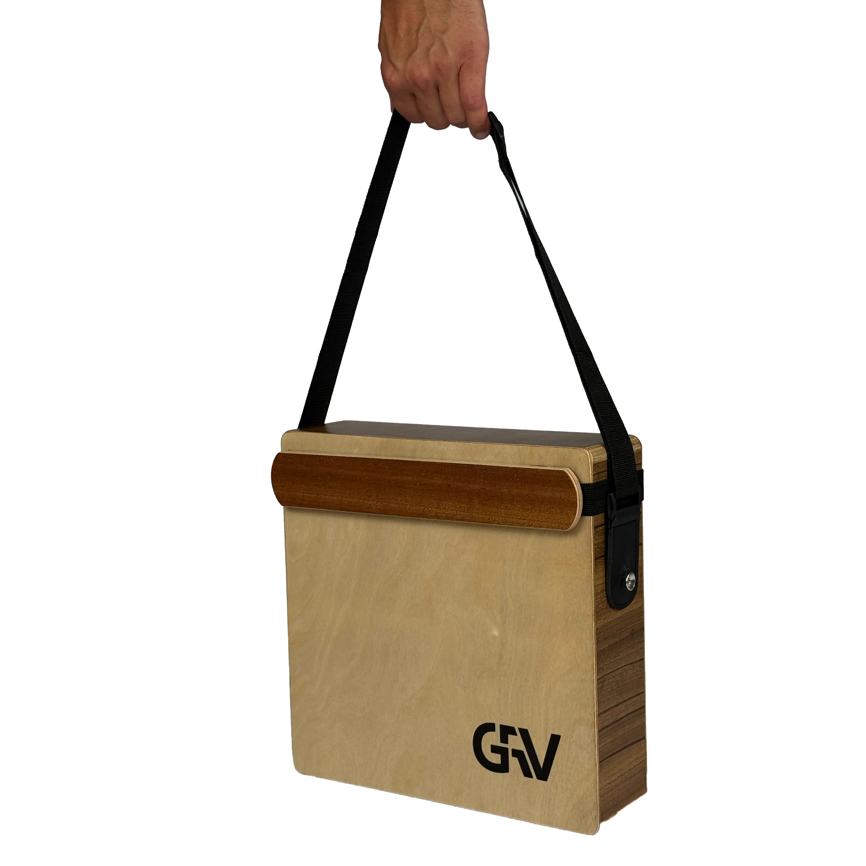 Additionally, GRV CAJ-TR Travel Cajon has two built-in belt clips (like in guitars), and the set includes a comfortable strap, so you can play on standing or while walking. You can also simply rest the instrument on your lap, which gives you complete freedom and comfort in playing in any conditions.