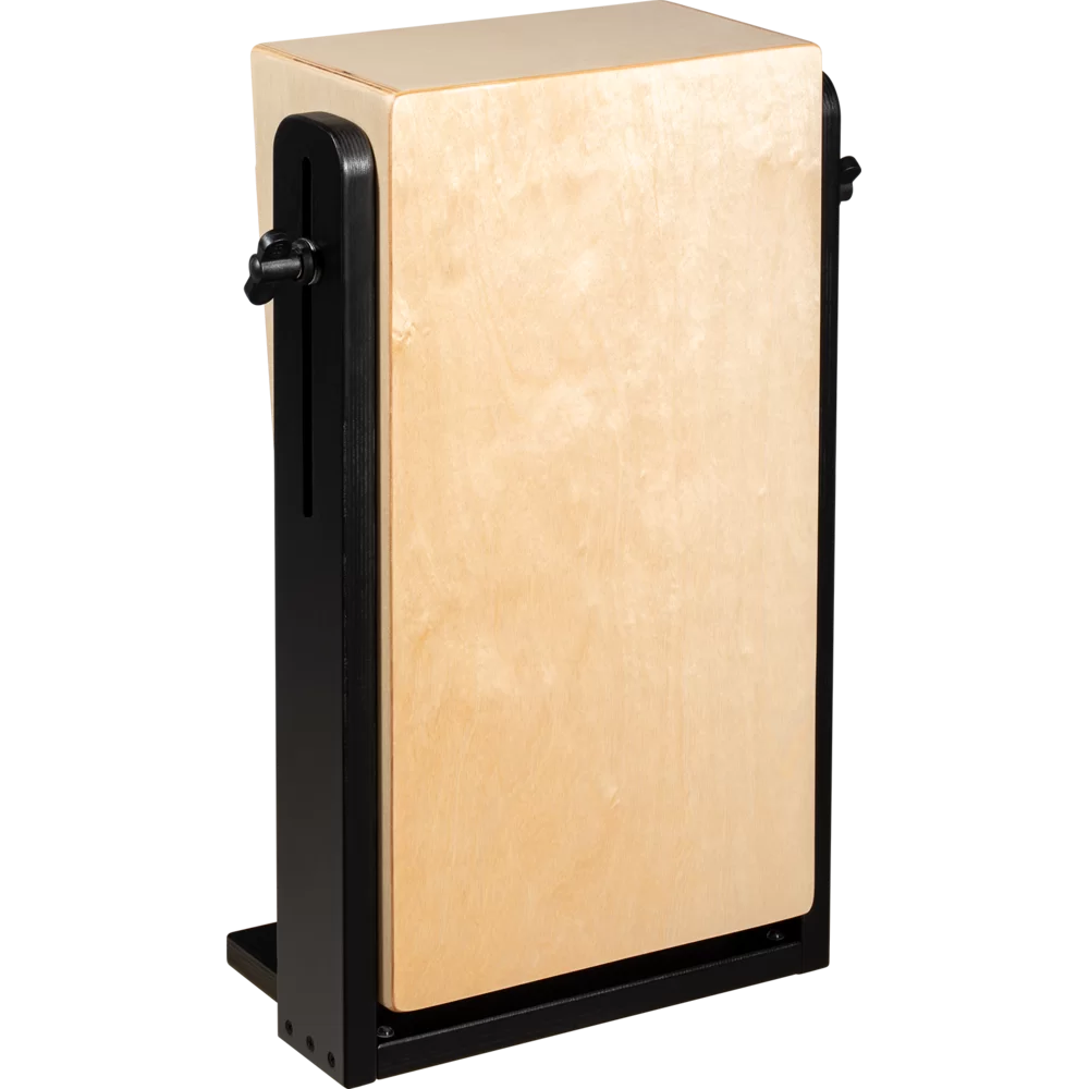 Designed for playing the cajon while seated on a chair, the Meinl Percussion Ergo Swivel Cajon brings the playing surface down to your knees. Simply loosen the thumbscrews on the handle and rotate the cajon to the position in front of you. The Cajon has a shallow, compact body to provide leg room, while its large sound port maintains deep bass. Birch plywood construction with internal snare springs produces clear slap sounds with a warm tone. The adjustable handle is equipped with feet that keep it stable on any surface. Supplied fully assembled.