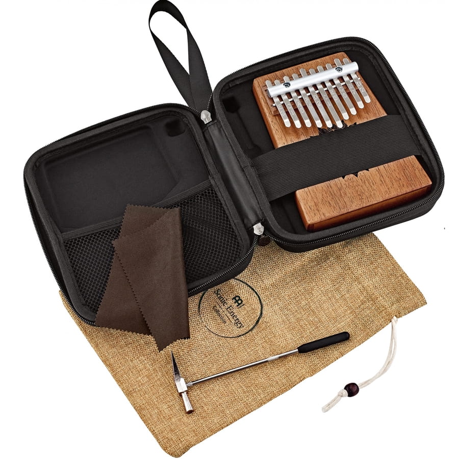 Meinl Sonic Energy Soundhole Kalimba is a delicately sounding melodic instrument. It has 10 steel bars on the C major scale. Great for sound therapy, meditation and yoga. Made from a beautiful hollow mahogany body with a matte finish. It comes with a protective case, which is great for traveling, and a tuning hammer to make any necessary adjustments (the kalimba comes pre-tuned). Additionally, it is also equipped with a microfiber cloth for cleaning the instrument.