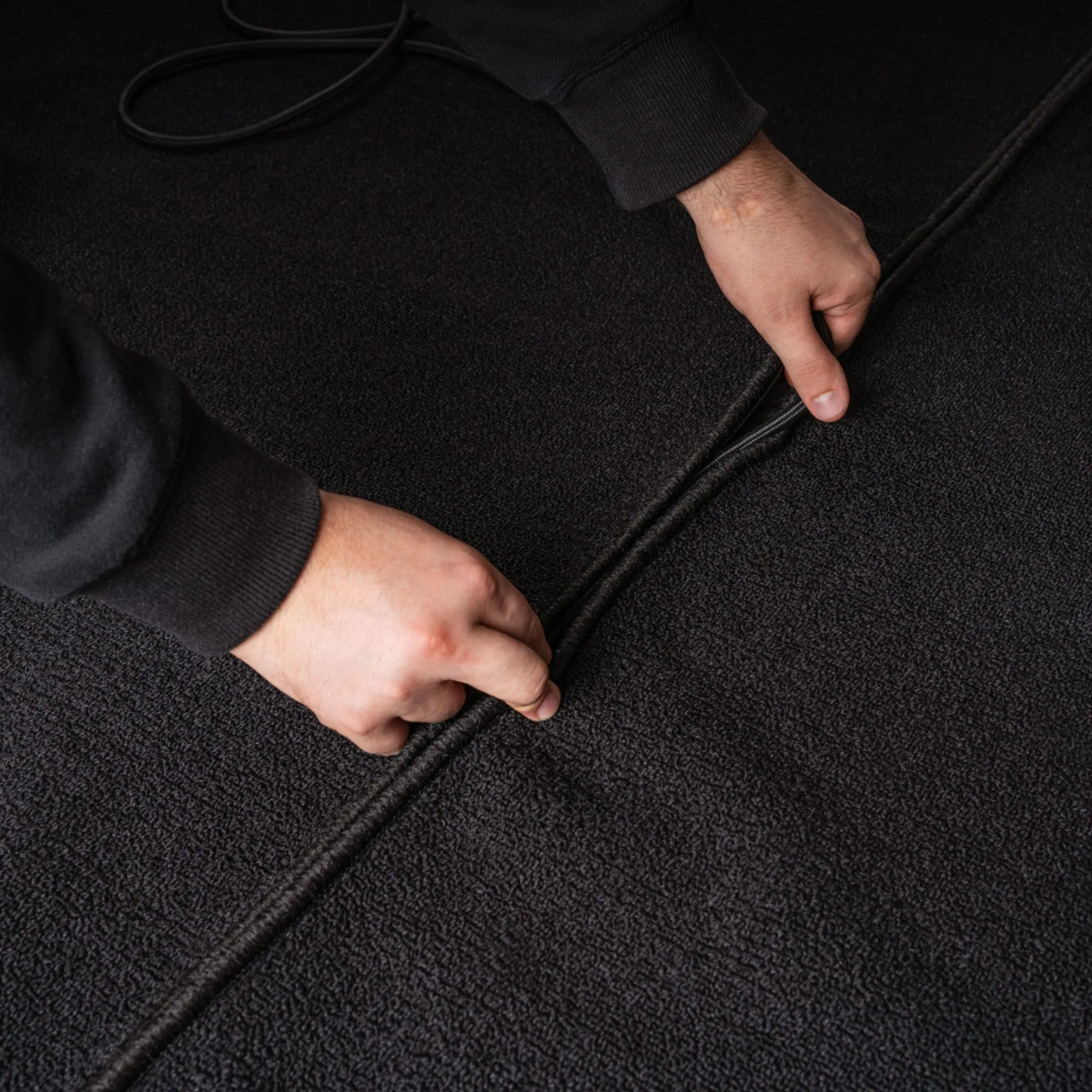 Rug designed for drum kits and percussion instruments. The tightly woven surface provides good grip for stands and bass drum pedals.