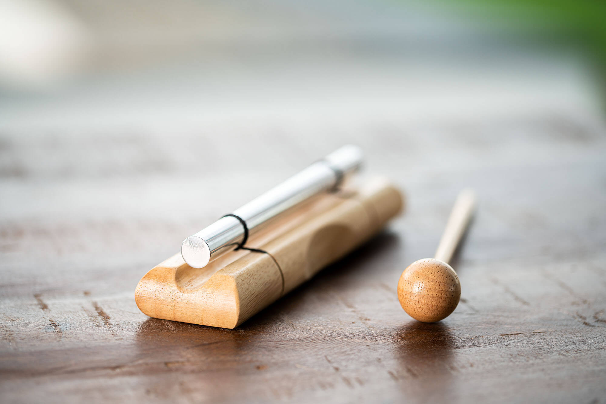 The decorative wooden base is finished with an engraved logo and tuning symbol, and each bell comes with a wooden hammer/wooden baton that produces a clear sound to easily fill the space (small or large) soothing sound. This hammer can be conveniently stored on the wooden base by sliding it under the bell.