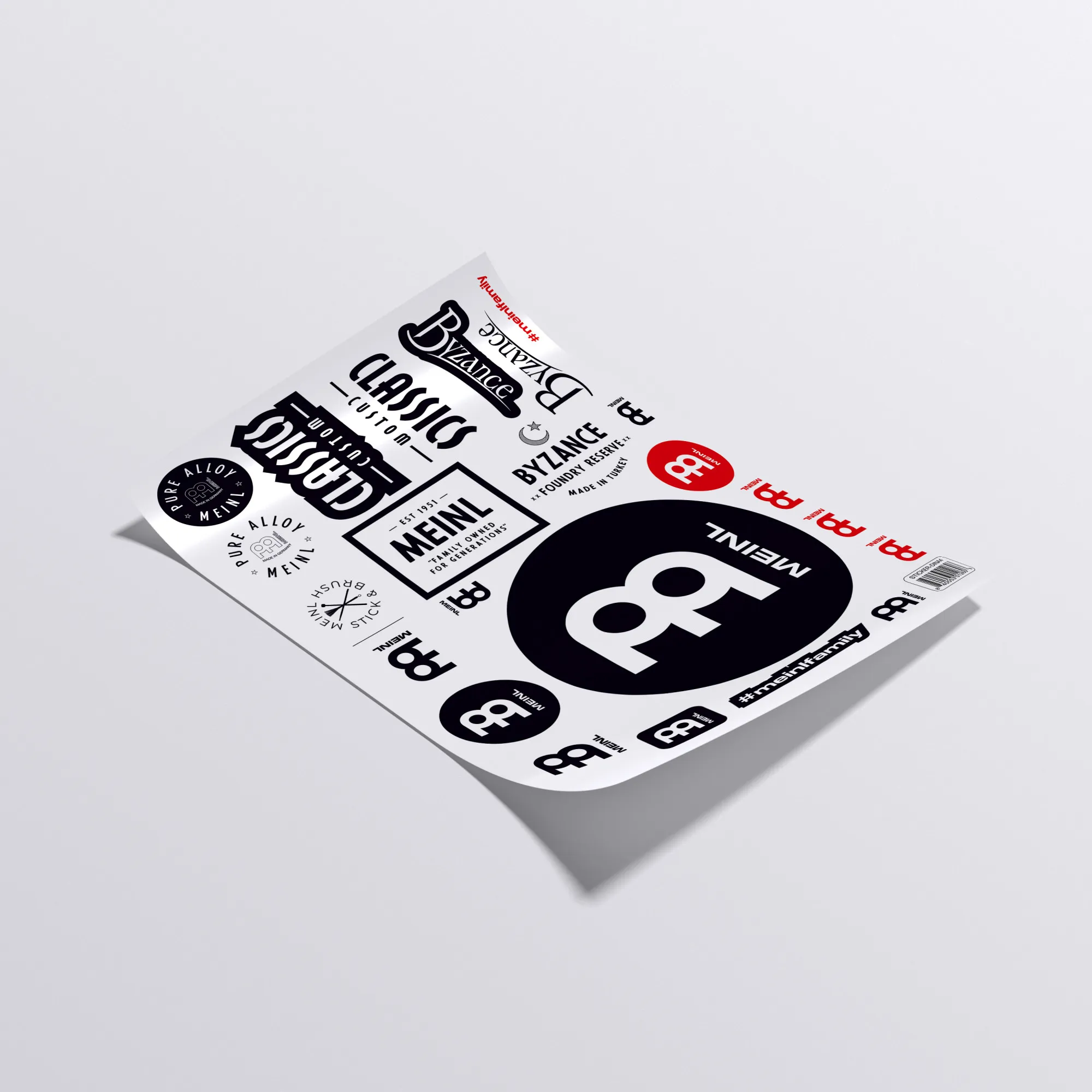 • Graphics: Pure Alloy, Classics Custom, Byzance, #meinlfamily, Logo black, Logo red, Vintage Logo, Meinl Stick & Brush Logo