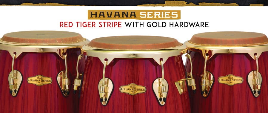 The Havana Series Conga Set is available in Quinto, Conga and Tumba versions, with a matching bongo set. The body circumferences of most modern congas measure 42" at the widest point, while these fiberglass congas have a Cuban-style width, with the Quinto, Conga and Tumba waist lines measuring 48", 50" and 52" respectively to give these drumsa very deep and dynamic punch.