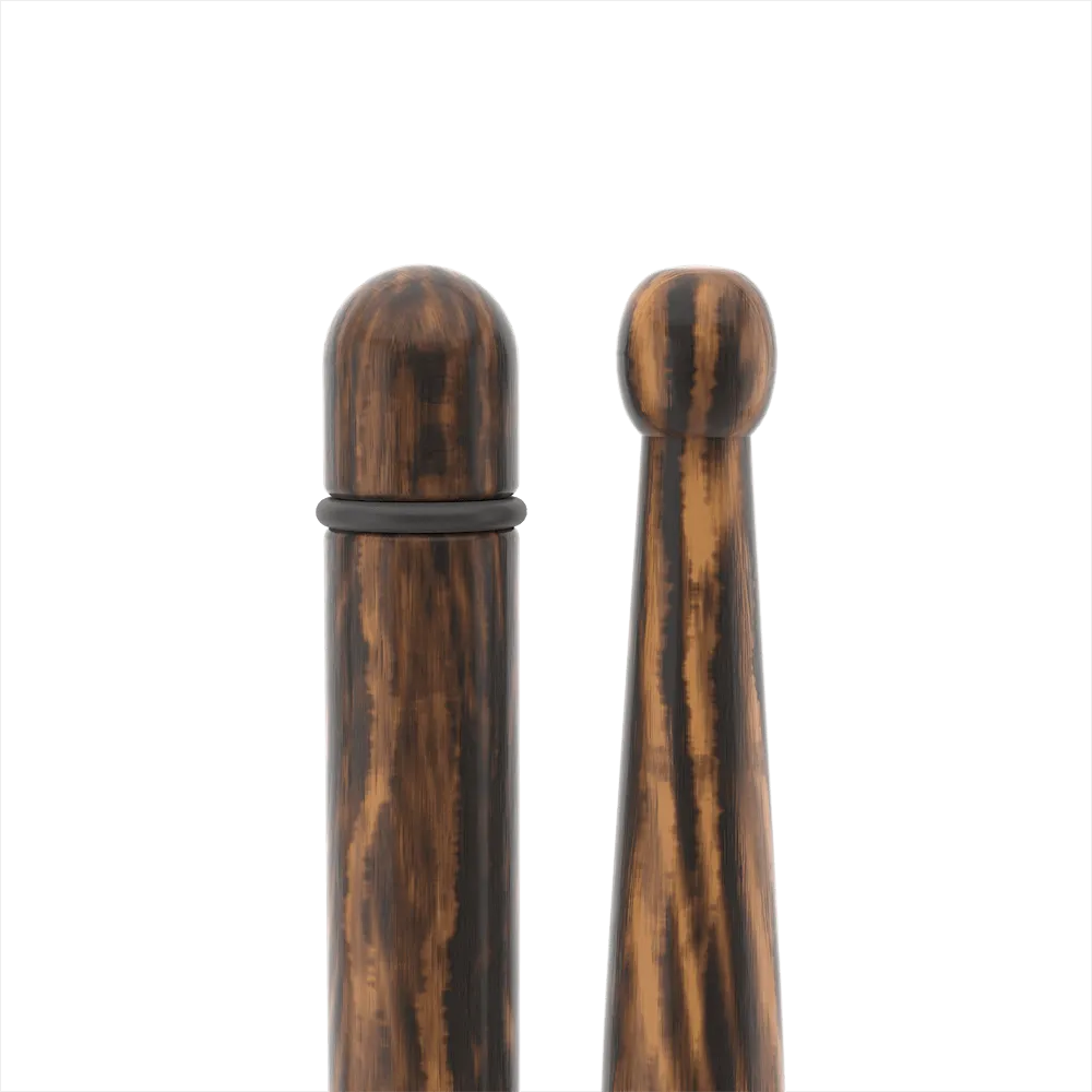 FireGrain Hickorywood is subjected to a revolutionaryheat-temperingprocess that transforms ordinary hickory sticks into tools of exceptional durability. FireGrain sticks retain their natural weight, balance and impact, allowing drummers to play harder and longer.