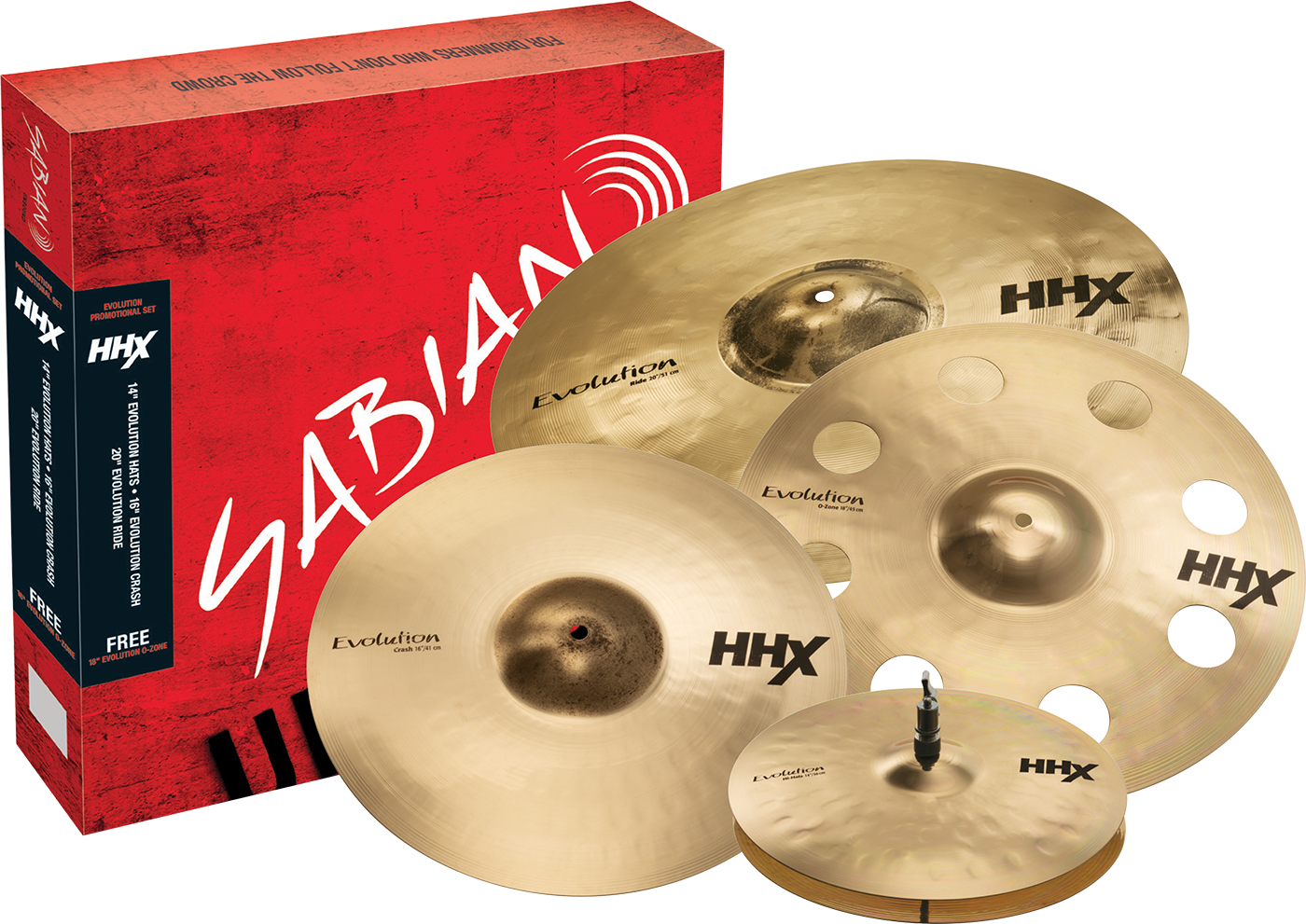 Cymbals included:< br/>Sabian HHX Evolution Hi-hat 14"