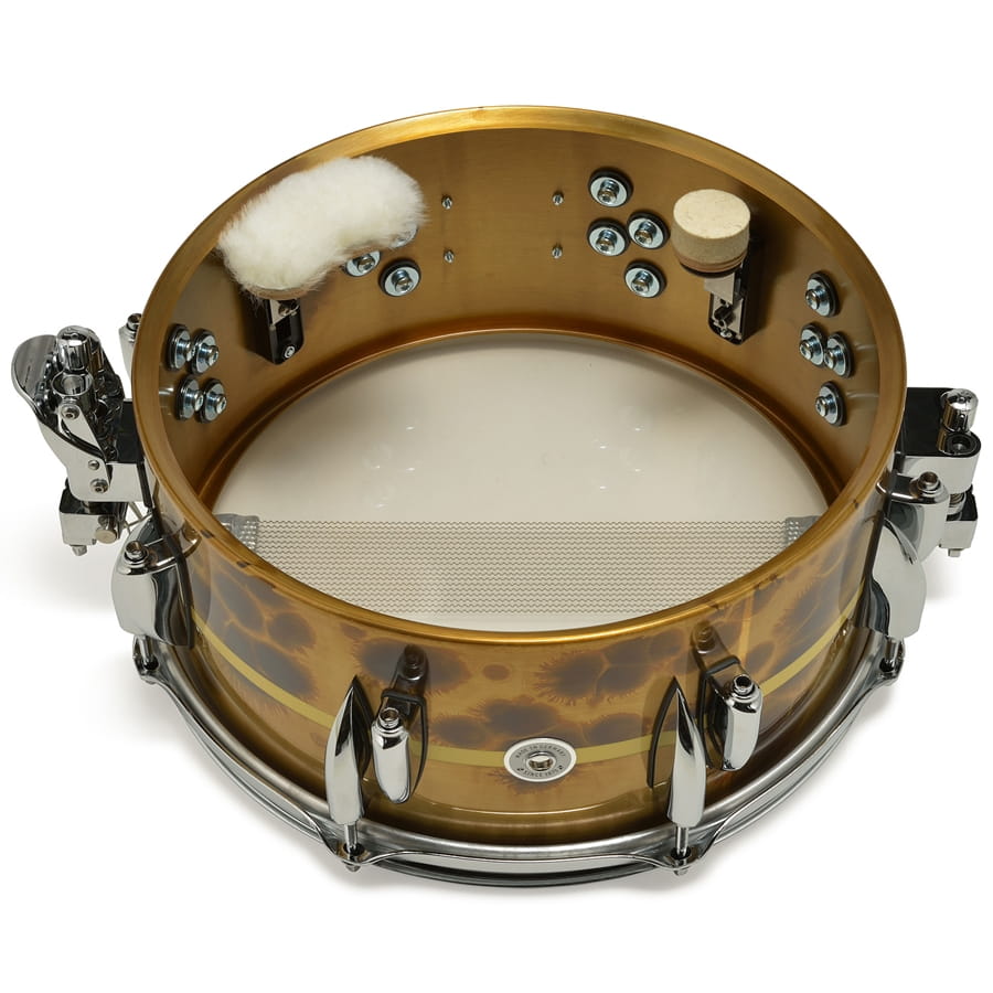 New model of Benny Greb's snare drum signature made of brass. It has a raw finish modeled on classic models. The 1.2 mm thick body presents a warm, round, resonant tone typical of this material, and pleasant overtones during rimshots add a musical character. Classic Teardrop lugs known from classic models and the Vintage series and a massive, cast snare machine are professional improvements that further improve the experience and pleasure of using this instrument. Also equipped with a dual MonoRail damping mechanism, using dampers made of different materials - felt and wool for even greater control of sustain and tone!