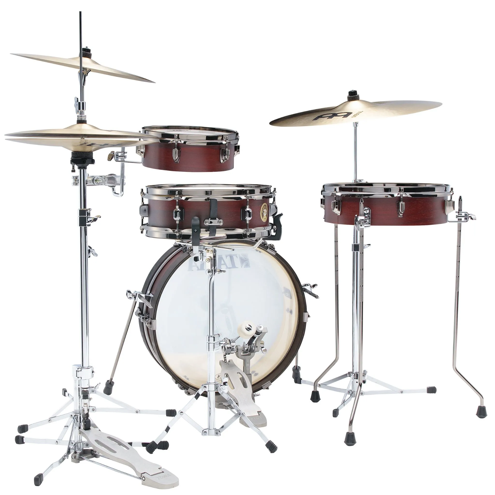 Compact drum kit with ultra-shallow shells (pancake), designed for mobility and easy transport. The small dimensions allow the entire kit to be packed into a single bag.